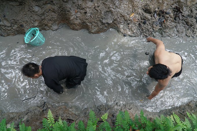 “Có nhiều khách mất cả tiếng vẫn không bắt được con cá nào nên chúng tôi phải trợ giúp bằng cách dùng máy bơm hút nước”, ông Chín nói. Nước được hút cạn, khách dễ dàng thấy những con cá nổi lên trên mặt bùn.